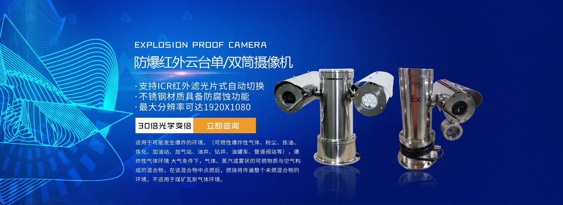 30倍-200萬(wàn)防爆紅外高清智能云臺(tái)攝像機(jī)-【30倍-200萬(wàn)】防爆標(biāo)志:Ex d ⅡC T6 Gb/ExtD A21 IP68 T80℃;304.316不銹鋼材質(zhì)具備防腐蝕功能;200萬(wàn)像素 逐行掃描1/2.3”CMOS;最大分辨率可達(dá)1280X960;30倍光學(xué)變倍,焦距為4.7-94mm