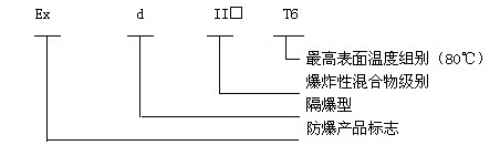 接線箱外殼明顯處有“ExdIIBT6”/“”標(biāo)志,銘牌上有防爆標(biāo)志,其代表意義是: